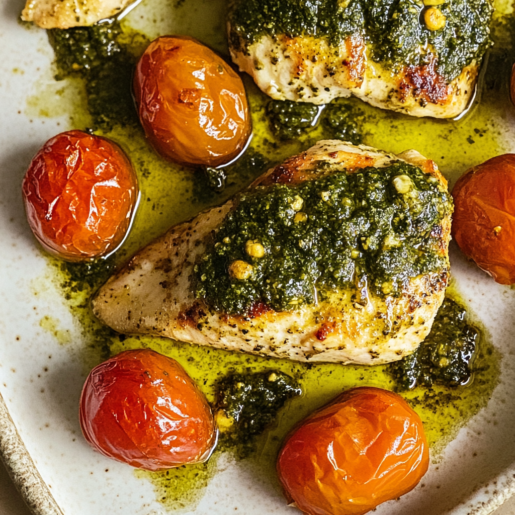 Easy Sheet Pan Pesto Chicken & Cherry Tomatoes Recipe