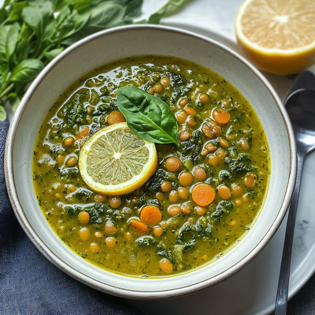 Cozy Lentil and Spinach Soup with Lemon Recipe Delight