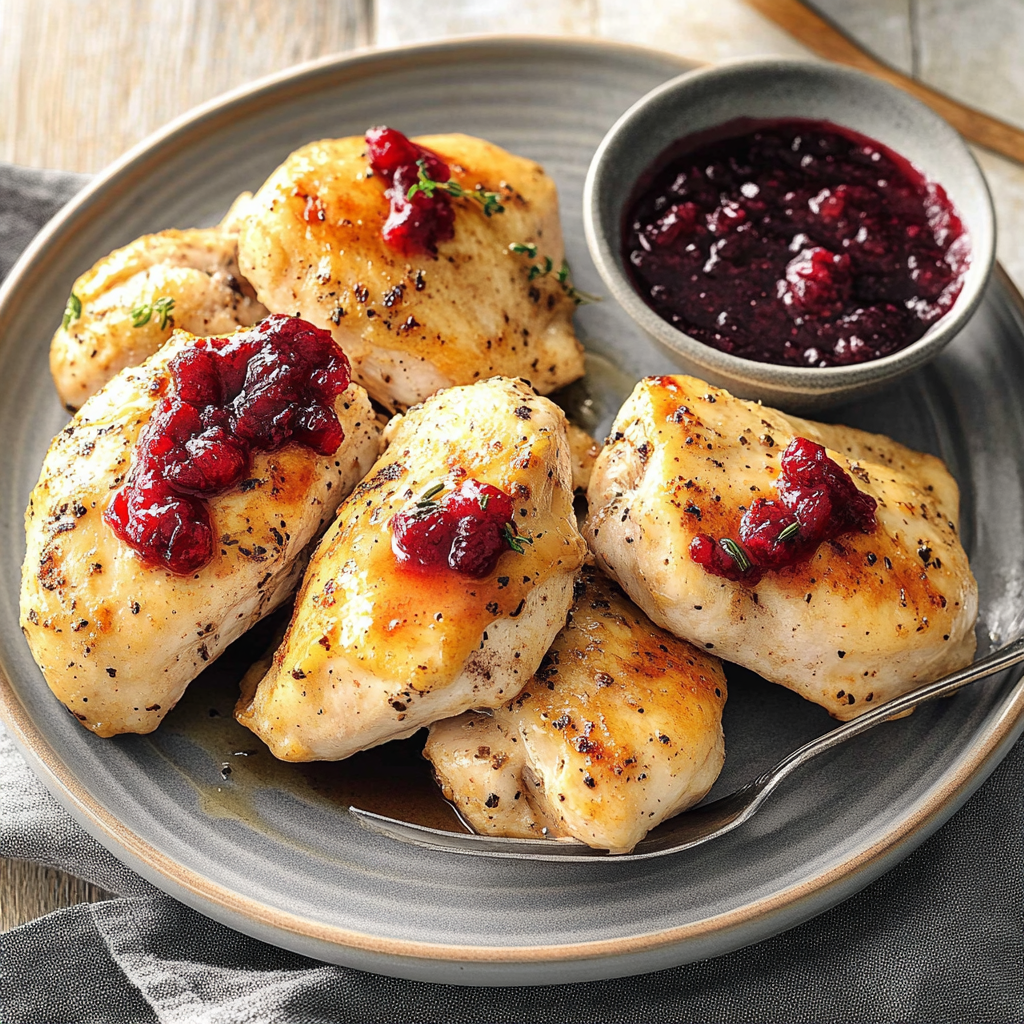 Quick Skillet Maple Bourbon Chicken with Cranberry Sauce