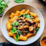 Indulge in a creamy, comforting Vegan Pumpkin Pasta with Spinach and Mushrooms that combines rich flavors and nutritious ingredients for a delightful meal any time of the year.