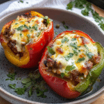 Store leftover stuffed peppers in an airtight container in the fridge for up to three days. To reheat, pop them in the oven at 350°F until warmed through, or microwave them if you’re in a hurry.