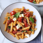 Baked feta pasta with roasted tomatoes is a delicious and simple dish that combines creamy baked feta cheese and sweet, caramelized cherry tomatoes. The ingredients are typically tossed together with pasta and seasoned with olive oil, garlic, and fresh herbs. This dish has gained popularity on social media due to its vibrant colors and ease of preparation. It’s perfect for a quick weeknight dinner or a special occasion, and you can customize it with your favorite vegetables or proteins.