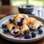 Blueberry Cream Cheese Egg Rolls are a crispy dessert filled with sweet blueberries and creamy cheese, making them an irresistible treat for any occasion.