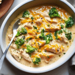 Crockpot Creamy Broccoli Cheddar Chicken is the kind of dish that feels like a warm hug on a chilly day. Picture this: tender chicken swimming in a velvety, cheesy sauce, surrounded by vibrant green broccoli that adds both color and crunch. The aroma wafts through the house, making your stomach growl louder than a toddler who skipped their nap. This dish is perfect for cozy family dinners or when you’ve got friends over and want to impress them without spending all day in the kitchen.