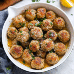 Indulge in these tender turkey meatballs enveloped in a creamy garlic and Parmesan sauce, perfect for family dinners or cozy gatherings.
